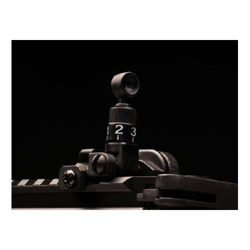 - Foldable front and rear sights, adjustable for windage and elevation