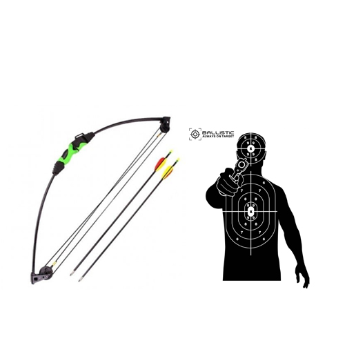- Combo Includes: 1 x MK-CB015 Bow, 5 x Fiberglass Arrows (26”), 2 x Man Targets