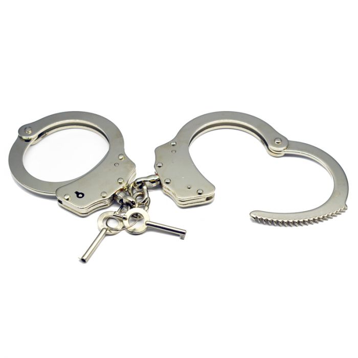 Classic design nickel plated steel handcuff with a nickel plated polished finish and also a smooth single chain strand action allowing for fast and efficient cuffing!