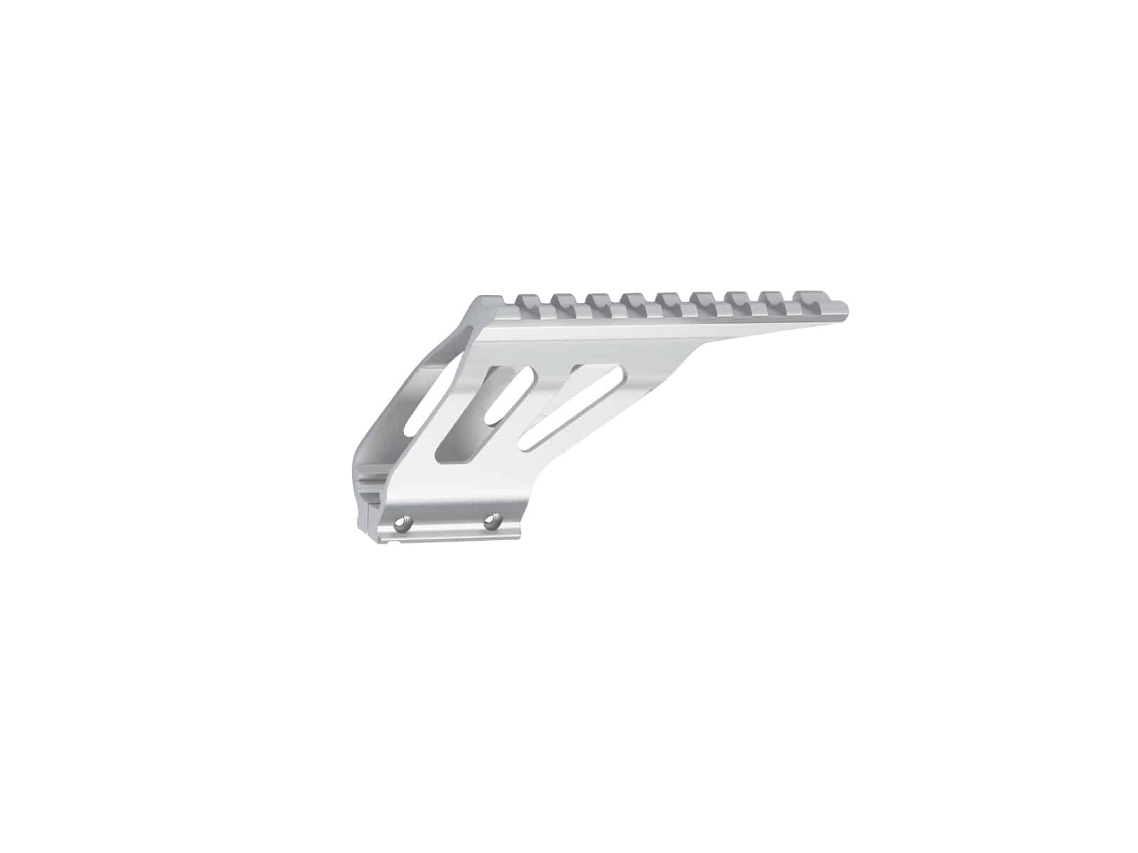 Lightweight CNC machined aluminum rail mount. It attaches to the frame-rail on the SP-01 SHADOW, and is securely held in place by steel nuts and bolts. Provides both top and bottom rail, for mounting of a Dot-sight and tactical flashlights or laser.